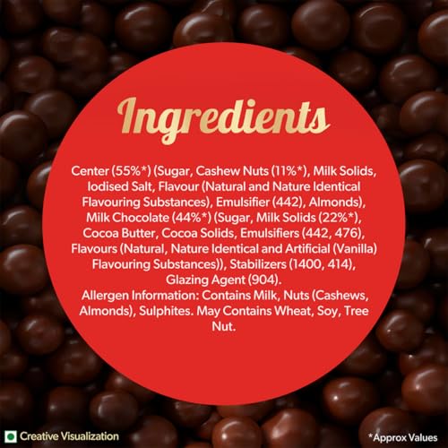Cadbury Nutties - Enjoy the blend of rich exotic cashew nuts and Cadbury milk chocolate in every bite. With the yummy flavour of cashew nut and a smooth chocolate coating Cadbury Nutties are the perfect munching partner. Each Cadbury Nutties chocolate pack contains cashew kernels enrobed in chocolates and is an ideal combination to satisfy your sweet urges. This crunchy chocolate ball of Cadbury Nutties is suitable for vegetarians also.