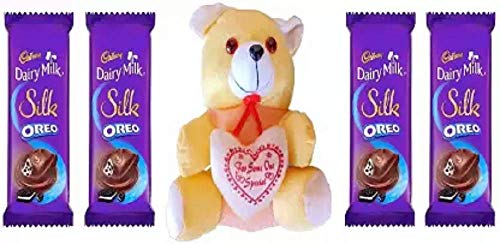 Cadbury Silk Oreo Pack of 4 Chocolates with Teddy Combo (Silk Oreo Chocolate -4 Teddy Bear -1)