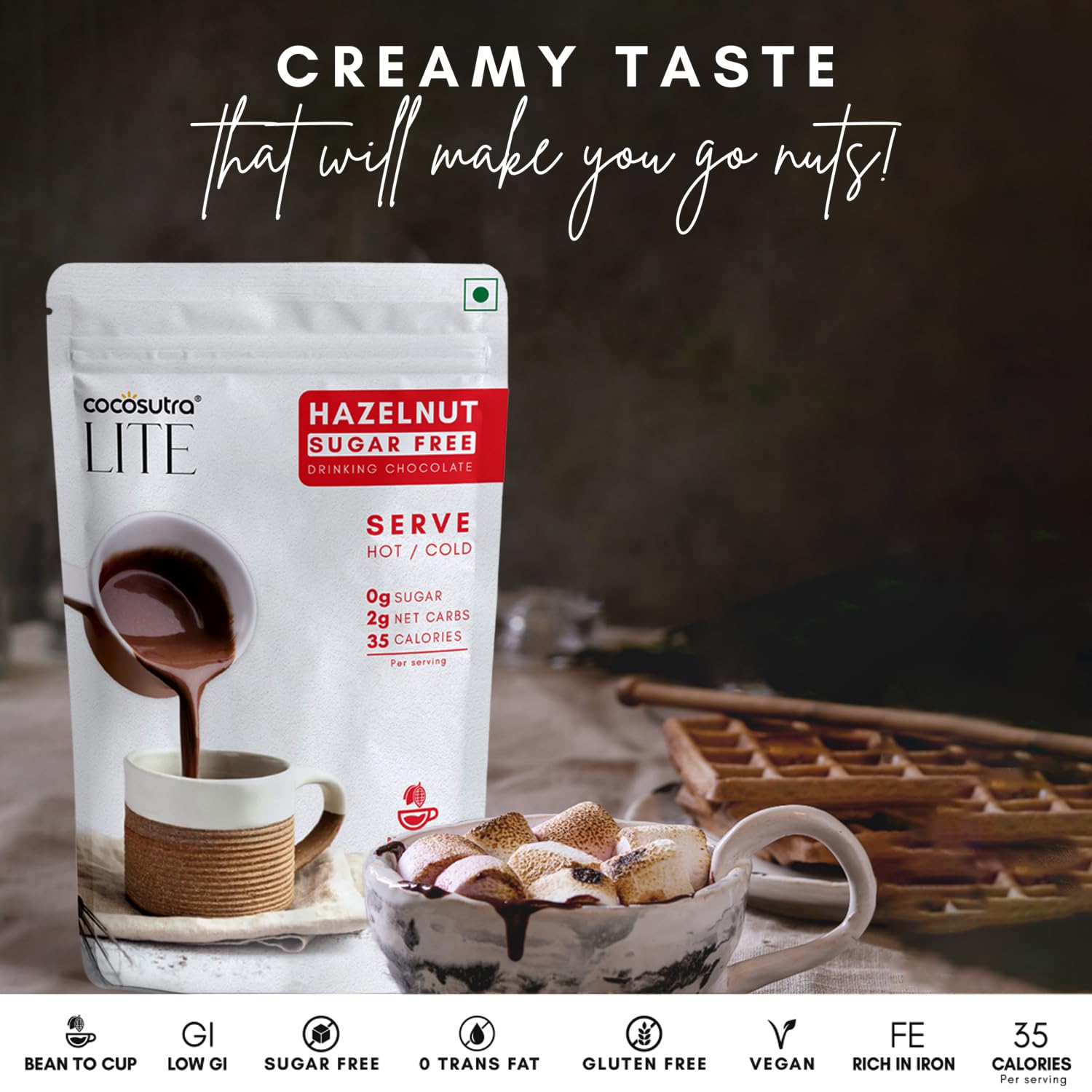 Creamy Hazelnut: You will go nuts for this exquisite blend of aromatic cocoa and rich chocolate paired with the perfect creamy taste of roasted hazelnut.