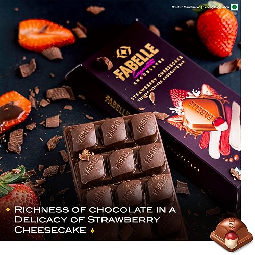 Inspired by the signature British dessert you can experience the delicate flavours of strawberry cheesecake in this luxury milk chocolate bar. Experience a riot of flavours as you taste the smoothness of milk chocolate the sweetness of strawberry filling the richness of cheese mousse and the crunchiness of crispy inclusions. Expertly crafted by Master Chocolatiers Fabelle Strawberry Cheesecake offers a dessert like experience reimagined in a luxury chocolate bar. A unique chocolate experience for true connoisseurs this chocolate treat can be indulged at any time. Irrespective of the time or mood this masterpiece can be indulged after a hard day at work or as a mid-day/ post dinner indulgence. Finding the perfect gift can be tricky so when in doubt gift chocolate! With chocolate you can never go wrong so whatever the occasion be it special occasions like Birthdays Anniversary Valentines Day or just to say Sorry or festive occasions like Diwali Raksha Bandhan and Christmas this beautifully packaged indulgent chocolate gift by Fabelle will make the day more special. About Fabelle Launched in April 2016 Fabelle has redefined the way the country experiences chocolates. Its unique offerings in the luxury and premium chocolate segment is quite unlike anything thats available in the market today. Its luxurious range of chocolates are Made in India after sourcing the finest single origin cacaos from Africa and Latin America and blending it with exotic ingredients. Each of these chocolates have been handcrafted masterfully by the Master Chocolatiers reimagining the way chocolate should look taste and feels.