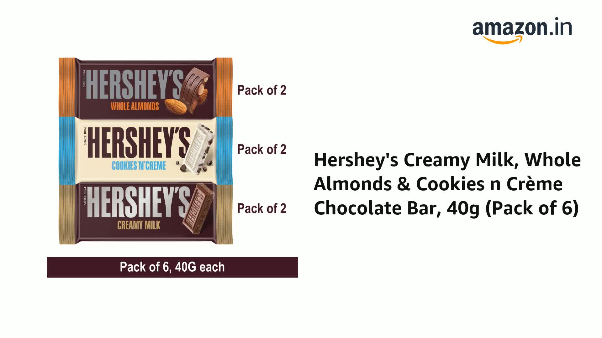 HERSHEY'S 2 Whole Almonds, 2 Cookies 'N' Creme And 2 Milk Bar 40G-Pack Of 6,240 Grams