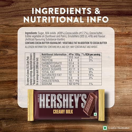 Dive into a world of indulgence with HERSHEY BARS. A feast for your taste buds with creamy indulgent and mouth-watering chocolates that are meant to be shared. HERSHEY'S BARS is the perfect partner for snacking sharing or gifting. These tasty and delicious bars offer a delectable taste and come in a molded bar format making it easier to break share and bite into. Great for sharing with friends and family. Suitable for vegetarians and a great choice for anyone who loves delicious melt-in-mouth indulgence"