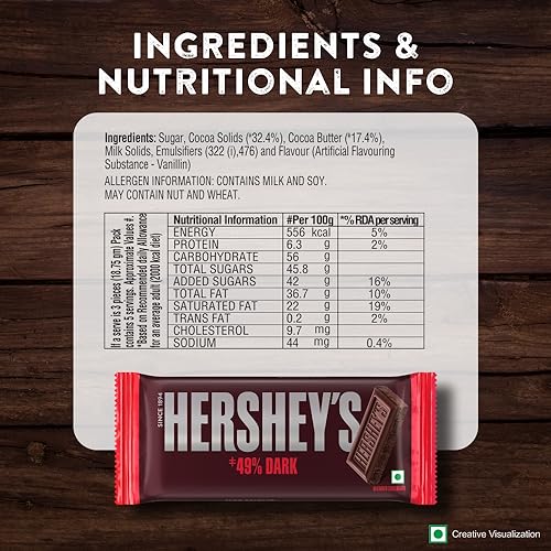 Dive into a world of indulgence with HERSHEYS BARS. A feast for your taste buds with creamy indulgent and mouth-watering chocolates that are meant to be shared. HERSHEY'S BARS is the perfect partner for snacking sharing or gifting. These tasty and delicious bars offer a delectable taste and come in a molded bar format making it easier to break share and bite into. Great for sharing with friends and family. Suitable for vegetarians and a great choice for anyone who loves delicious melt-in-mouth indulgence"