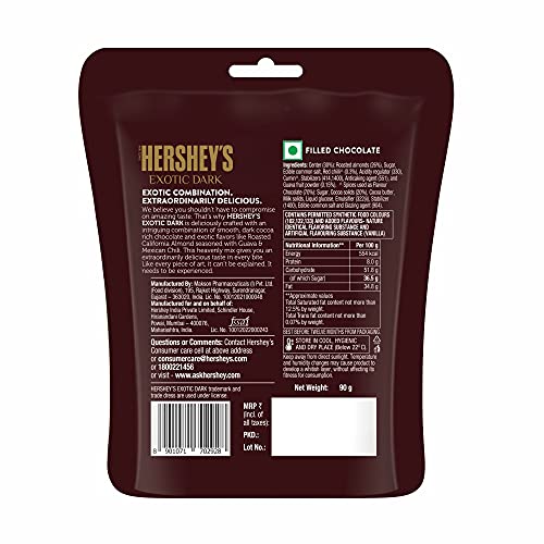 Hershey's Exotic Dark is one of its kind premium dark cocoa rich chocolate in Hershey chocolate portfolio. It is a unique combination of Dark coca rich chocolate & premium exotic flavors. We believe that you shouldnât have to compromise on amazing choco