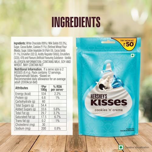HERSHEY'S Kisses Chocolate Cookies 'N' Creme Melt-in-Mouth Delights Individually Wrapped 33.6G,20 Grams