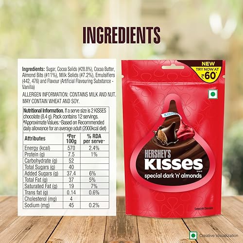 Enjoy melt-in-mouth chocolates that are perfect bite-sized chocolates in 5 delectable flavors. Perfect for sharing HERSHEYS Kisses are delicious chocolates that are individually wrapped to make your loved ones feel special. Great for sharing with friends and family; made with delicious chocolate. Suitable for vegetarians and a great choice for anyone who loves delicious melt-in-mouth chocolates.