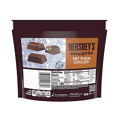 Hershey's nuggets extra creamy milk chocolate indulge in the delightful mix of silky milk chocolate rich toffee and crunchy almonds. These two-bite nuggets are perfect for stashing and sharing.