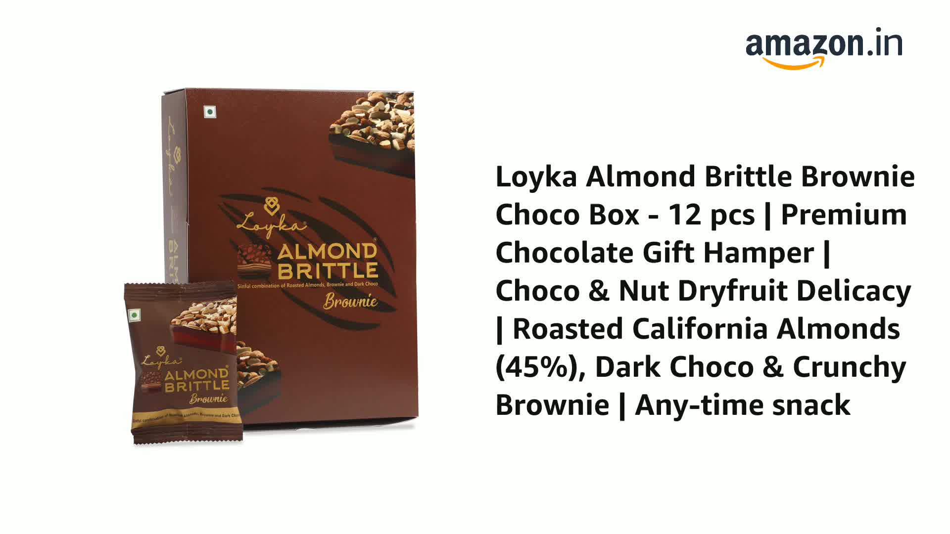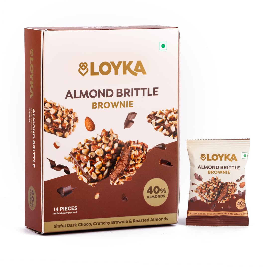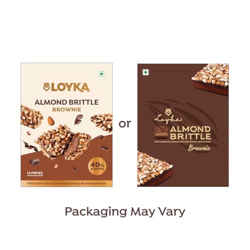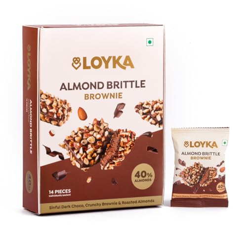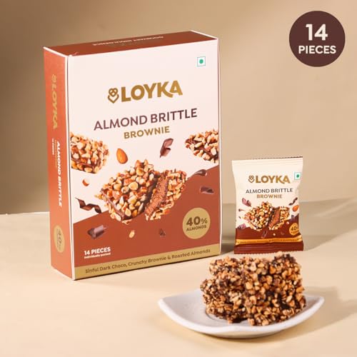 Loyka Almond Brittle Brownie Choco Box -14 pcs | Premium Chocolate Gift Hamper | Choco & Nut Dryfruit Delicacy | Roasted California Almonds (40%) Dark Choco & Crunchy Brownie | Any-time snack