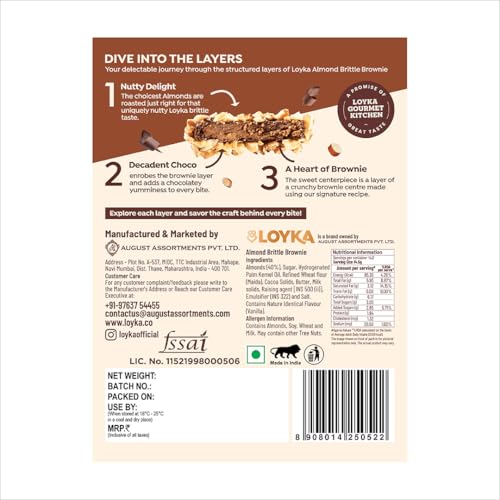 High-quality ingredients : Our Almond Brittle Brownie is made with premium quality fresh roasted california almonds (40%) dark choco & crunchy brownie. A few simple ingredients for a delicious nutty taste.