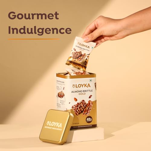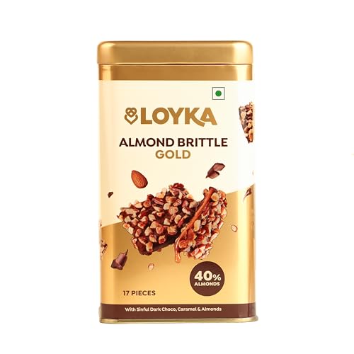 Loyka Almond Brittle Gold - 17 pcs Reusable Tin Gift Box |Premium Chocolate Gift Hamper | Choco & Nut Dryfruit Delicacy | Roasted California Almonds (40%)
