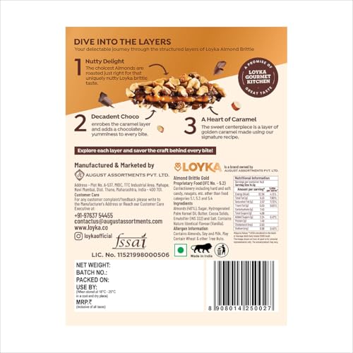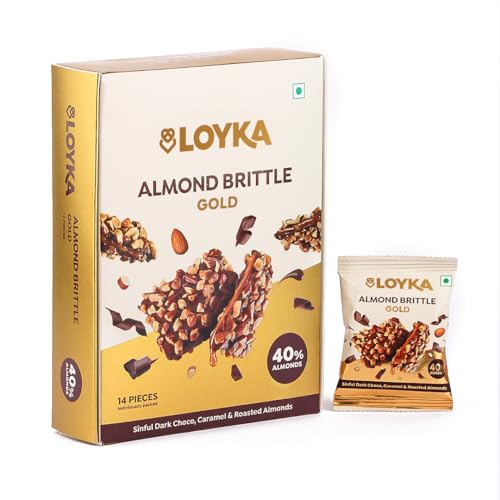 LOYKA Almond Brittle Gold Choco Box 14 Pcs (Pack of 1) | Premium Chocolate Gift Hamper|Choco & Nut Dryfruit Delicacy|Roasted California Almonds (40%)Dark ChocoSalted CaramelAny-Time Snack