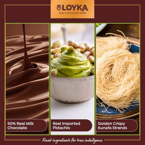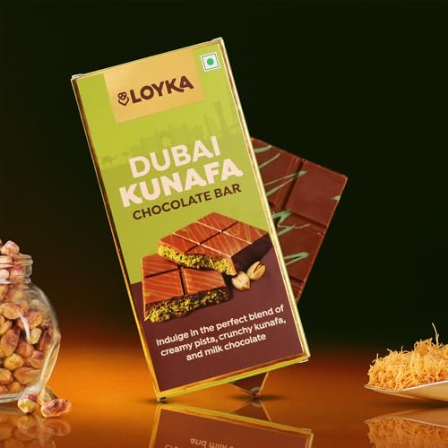 Savor the rich and luxurious taste of Loyka Dubai Kunafa Chocolate a gourmet treat that brings together the irresistible flavors. his delightful creation offers an exquisite combination of textures and flavors making it the ultimate indulgence for chocolate lovers. Harmoniously balanced with the nutty essence of pistachios and coated in a silky-smooth layer of 50% milk chocolate. Crafted with the finest ingredients this chocolate delicacy is inspired by the traditional Kunafa dessert reimagined in a luxurious chocolate experience. Perfect for gifting celebrations or self-indulgence Loyka Dubai Kunafa Chocolate is a premium gourmet treat that promises a heavenly taste with every bite.