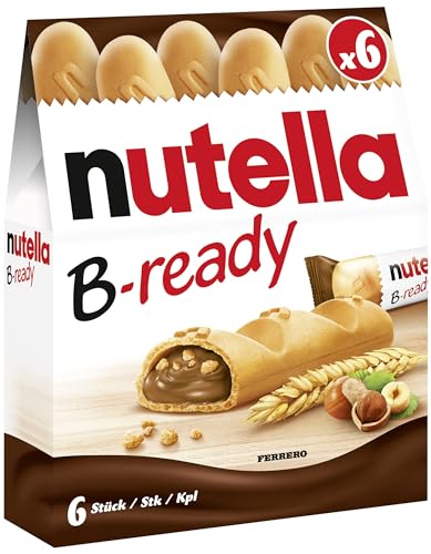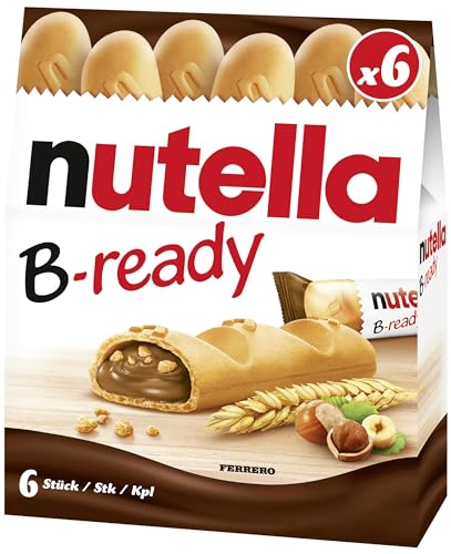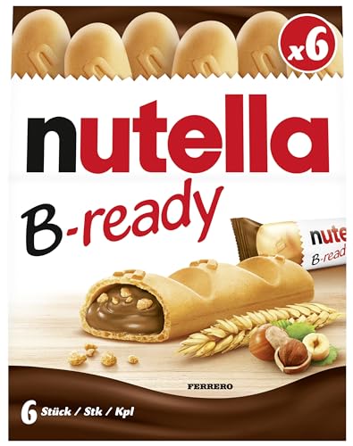Nutella b-ready wafer filled with Nutella 220g. Pack a crisp wafer of bread in the form of mini - baguette stuffed with a creamy Nutella. Creamy spread made with skim milk and hazelnut.