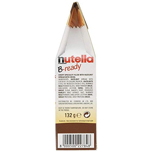 Nutella b-ready wafer filled with Nutella 220g. Pack a crisp wafer of bread in the form of mini - baguette stuffed with a creamy Nutella. Creamy spread made with skim milk and hazelnut.