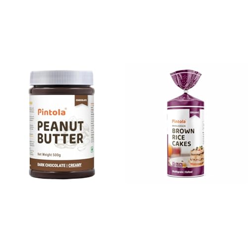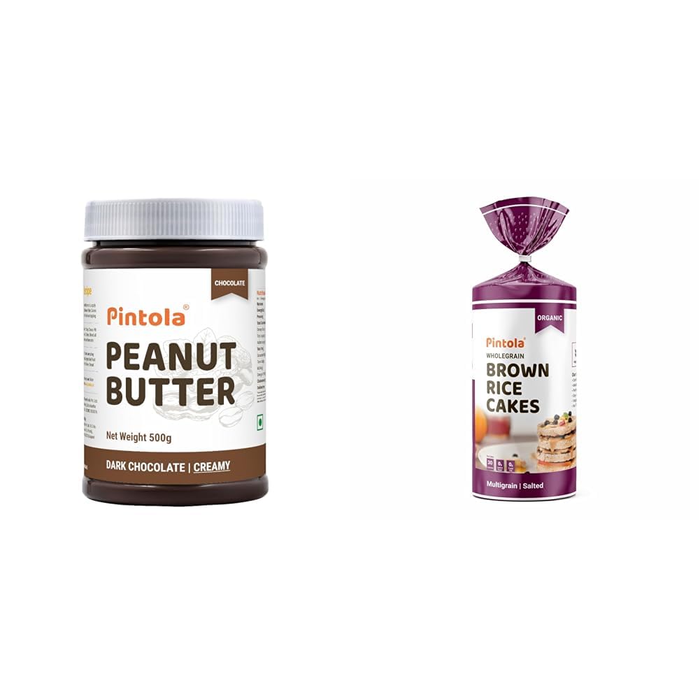 Pintola Combo - Chocolate Peanut Butter Creamy 500g + Rice Cake Multigrain Salted 130g, 100% Pure Roasted Peanuts butter Chocolate Flavour Creamy,High Fibre With Organic Rice Cakes