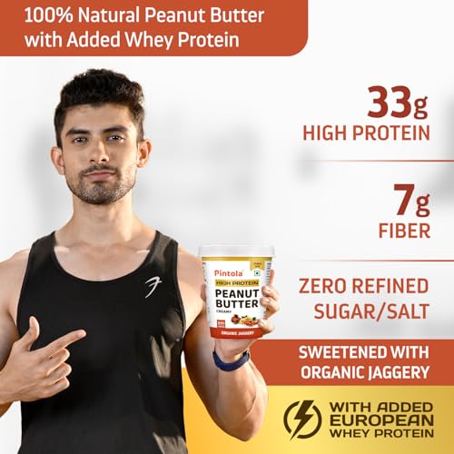 Pintola HIGH Protein ORGANIC JAGGERY Peanut Butter Crunchy 1kg with 33g Protein & 7g Fiber Whey Protein Peanut Butter Vegan Gluten Free Zero Added Salt Cholesterol Free 100% Roasted PeanutsRoasted Peanuts Whey Protein ConcentrateOrganic JaggeryPintola Organic Wholegrain Brown Rice Cakes Combo Pack (All Natural) (Multigrain and Unsalted) (130 g x 2)Made with Organic Whole Grain Brown Rice