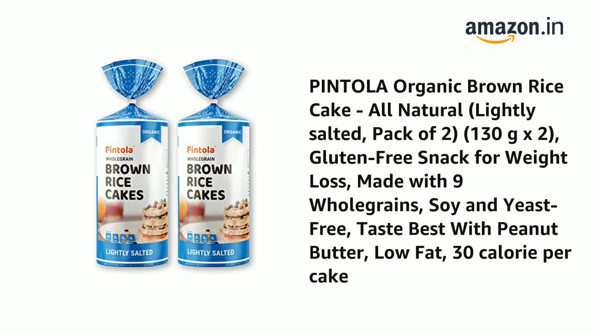 HomeGroceryFlavorsNut & Seed ButterPINTOLA Organic Brown Rice Cake - All Natural (Lightly salted, Pack of 2) (130 g x 2), Gluten-Free Snack, Made with 9 Wholegrains, Soy and Yeast-Free, Taste Best With Peanut Butter, Low Fat, 30 calorie per cake