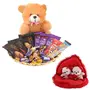 Valentine Chocolate Gift Hamper is designed for express your feeling to your partner on Valentine's Day and Specially ideal for 7 Days of Valentine's Week - Rose Day Propose Day Chocolate Day Teddy Day Promise Day Hug Day Kiss Day or any Special Love Day of your life. This will make their heart happy because this radiates love passion and romance. This Chocolate combo Gift set will surely bring a smile on their faces and they shall cherish the beautiful moment of memories for years to come. This Chocolate Gift Hamper is ideal for Girlfriend Boyfriend Wife Husband Loved once. This Hamper includes Valentine Heart Teddy Bear 1 Golden Tray 3 Dark Fantasy (12.5g) 3 Dairy Milk (13.2g) 1 Kitkat (12.8g) 1 BarOne (22g) 1 5Star (25g) 5 Eclairs Brown Teddy Bear