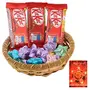 You don't need to wait for the right time to share your happiness you can share it with your loved ones anytime anywhere. we sometimes forget to savor the little moments of pleasure and share these joyful moments with others. We believe that chocolates are the best way to share and spread joy around.If you are a chocolate lover there cannot be a better treat for you than this wonderful Hamper.such a yummy treat that can easily delight a dear one. This is an absolute bundle of joy. This Hamper Includes: 1 Golden Katory 3 Kitkat Star Shaped Chocolate 5Diwali Card.