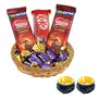 You don't need to wait for the right time to share your happiness you can share it with your loved ones anytime anywhere. we sometimes forget to savor the little moments of pleasure and share these joyful moments with others. We believe that chocolates are the best way to share and spread joy around.If you are a chocolate lover there cannot be a better treat for you than this wonderful Hamper.such a yummy treat that can easily delight a dear one. This is an absolute bundle of joy. This Hamper Includes: 1 Golden Katory 2 Nestle Classic 1 Kitkat 5 ChoclairsDiwali Matki Diya 2 Pieces.