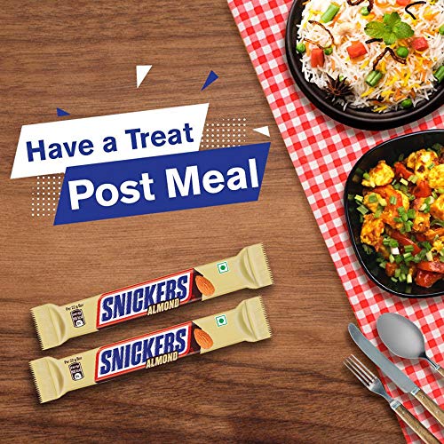 Why Snickers Almond Chocolate Bar? There are many ways to kill those hunger pangs but we know the best one! Loaded with almond nutty delight Snickers Almond chocolate bar takes care of your hunger instantly. With this chocolate devour the rich fusion of caramel and soft nougat for a satisfying experience. What makes it different? Snickers chocolates packed with delicious and nutritious roasted almonds make for a perfect solution for those hungry times. The rich fusion of nougat and caramel creates a deliciously rich flavour that is enough to rock your taste buds. When to have this bar? Grab a Snickers chocolate to tackle hunger on the go or indulge in delicious munching while binge-watching TV with your family. Gift this chocolate pack to your favourite people on different occasions and add sweetness to your moments.