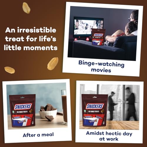 Why this Chocolate? Hunger cannot determine the course of your life only you can! Add some peanut power to your day with Snickers Family Treat Pack. Made with crunchy peanuts and chocolate this premium chocolate satisfies your taste buds and helps you fuel up during a busy day. Don't let stress get to you brace yourself for a chocolatey peanut collision with Snickers and bid goodbye to unwanted worries. Hurry up and awake the chocolate fanatic in you! What makes it different? Snickers bar packed with delicious and nutritious peanuts also contains nougat and caramel creating a flavor that's enough to rock your taste buds while busting hunger pangs between meals. Don't sacrifice taste for nutrition use this family treat pack to give to your loved ones and watch them enjoy and rejoice these delicious chocolate treats. When to have this bar? Reach out for a Snickers chocolate to tackle snack time while working at home grocery shopping or gaming because you're not you when you're hungry. Turn this amazing chocolate into a decadent cake wave goodbye to normal brownies and make delicious Snickers brownies or try quick and tasty Snickers pudding. There is so much that you can do with Snickers the choice is yours! Storage : Store in a cool and dry place.