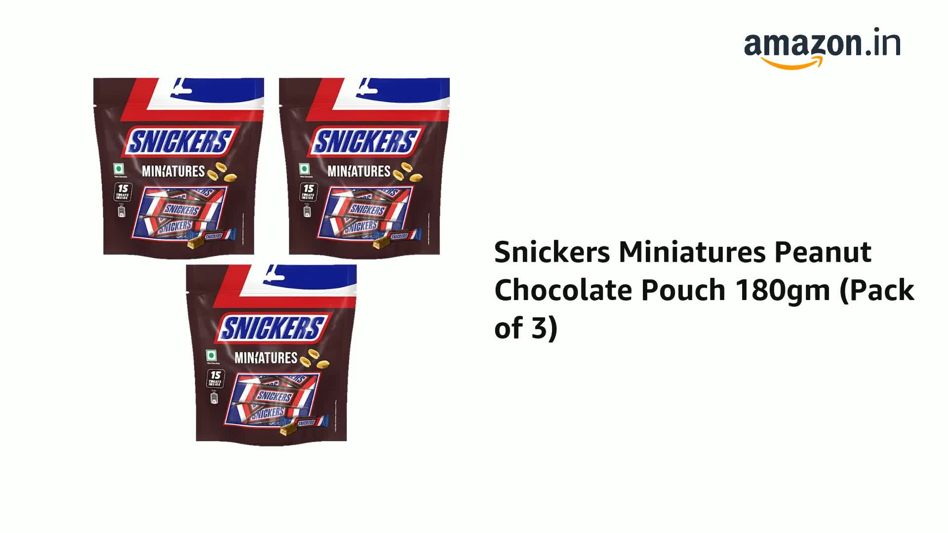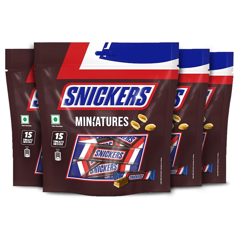 Why Snickers Peanut Chocolate? Hunger cannot determine the course of your life only you can! Snickers Peanut miniature chocolate lets you enjoy guilt-free indulgence with the goodness of nuts. Add some peanut power to your day with Snickers and be hungry no more. What makes it different? Snickers chocolates packed with delicious and nutritious roasted peanuts also contains nougat and caramel creating a flavor that's enough to rock your taste buds while busting hunger pangs between meals. Don't let stress get to you brace yourself for a chocolatey nutty collision with Snickers miniature chocolate pack and bid goodbye to unwanted worries. When to have this bar? Reach out for Snickers chocolates to tackle hunger on the go while binge-watching your favorite show or share a moment of delight with your loved ones. It can also be given as a chocolate gift pack to your favorite people on different occasions. How to have these? Bring out your inner chef and turn this amazing chocolate into a decadent cake wave goodbye to normal brownies and make delicious Snickers brownies or try quick and tasty Snickers pudding. There is so much that you can do with Snickers the choice is yours! Storage : Store in a cool and dry place.