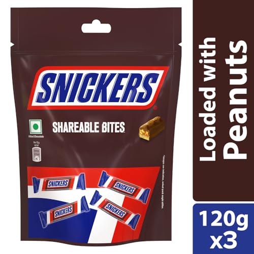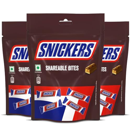 Snickers Shareable Bites Miniatures, Rakhi Gift Pack, Delicious & Nutritious Peanuts, Nougat & Caramel, 10 Minis in Every Pouch,Pack of 3, 120 gram