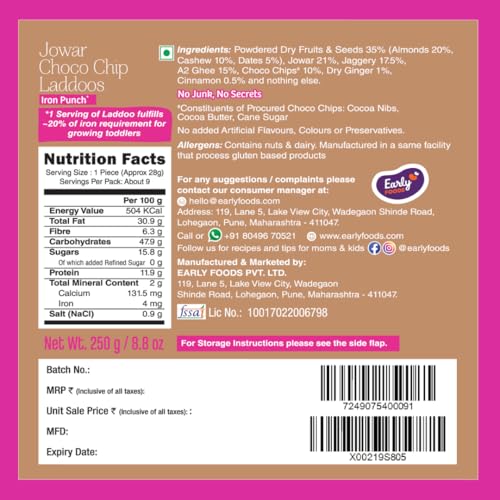 • 100% CLEAN INGREDIENTS: Our Ragi Laddu with Jaggery & Jowar Choco Chip laddu are crafted with the finest quality A2 Ghee Jaggery Raw Cacoa and a premium selection of dry fruits ensuring purity in every bite.