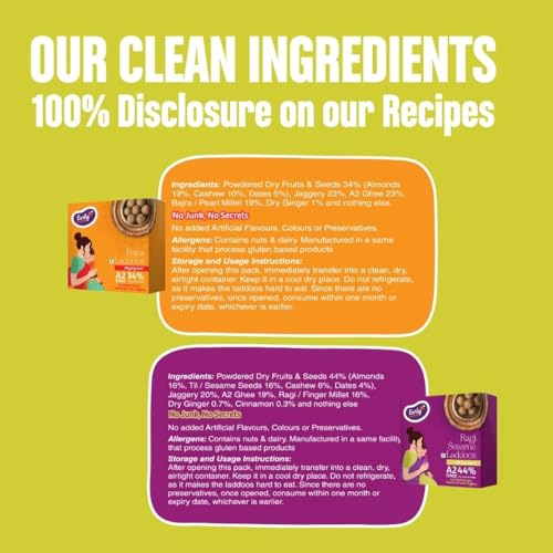 100% CLEAN INGREDIENTS: Our Bajra laddu & Ragi Til Laddu and Chocolate with Jaggery is crafted with the finest quality A2 Ghee Jaggery Raw Cacoa Sesame/Til and a premium selection of dry fruits ensuring purity in every bite.