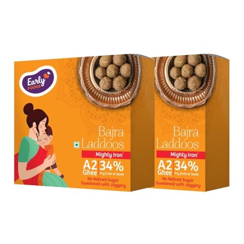 Early Foods Pack of 2: A2 Ghee Bajra Laddoo | Pearl Millet Laddu | Sugar Free Laddu with Jaggery | Gluten Free Laddu | postpartum ladoo