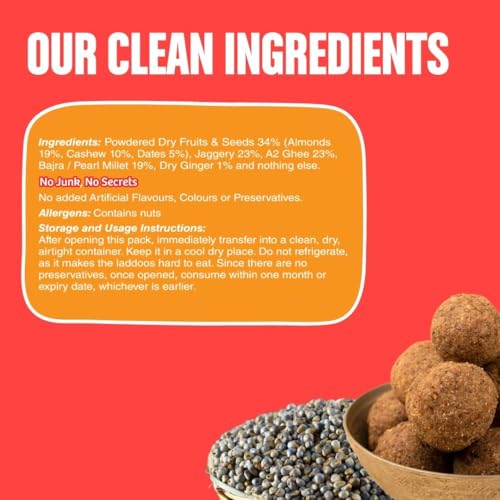 100% CLEAN INGREDIENTS: Our Bajra Laddu with Jaggery is crafted with the finest quality A2 Ghee Jaggery and a premium selection of dry fruits ensuring purity in every bite.