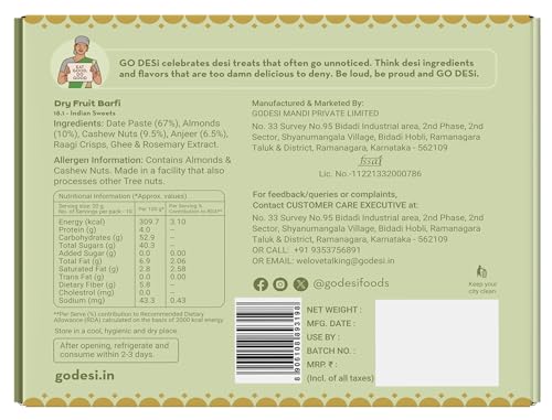 GO DESi Dry Fruit Barfi: Bite-sized treats made with dates and dry fruits!
