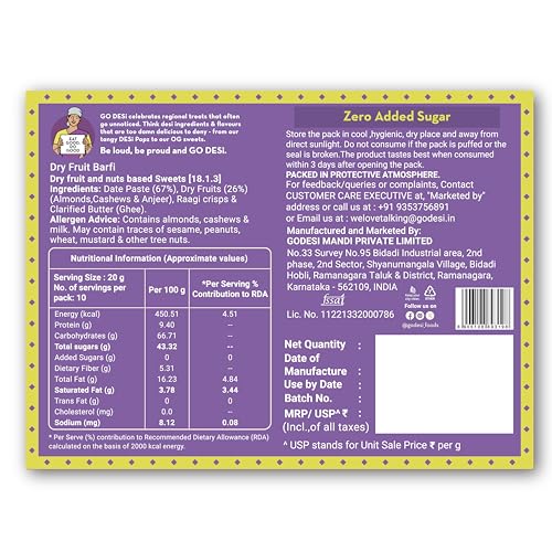 GO DESi - Dry Fruits Barfi | Dates Bar | Anjeer | Khajoor | Nuts | Indian Mithai | Sweets Gift Pack | No Added Sugar | 200 grams