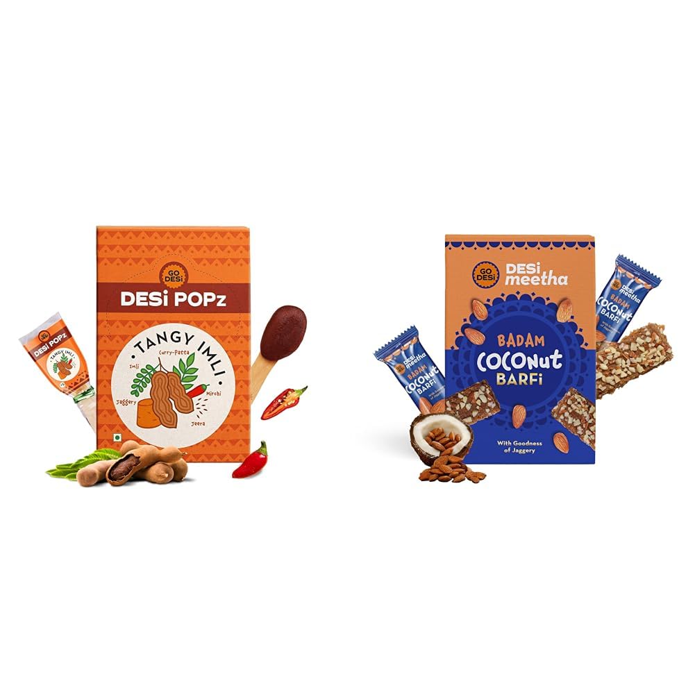 GO DESi Popz Imli Pop 50 Pieces 400 g & Badam Coconut Barfi 35 x 12g each Combo