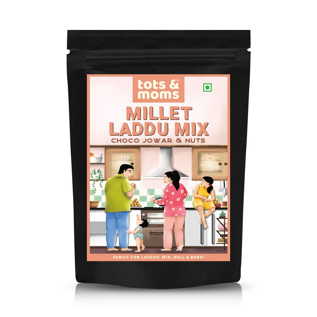 Made with love inspired by tradition! Tots & Moms Choco Jowar Laddu Mix brings back the magic of homemade laddoos with a healthy twist. Dates & jaggery sweeten naturally while jowar & nuts fuel little bodies & minds. DIY your way to family fun one delicious bite at a time! Skip boring snacks grab a handful of happiness and rediscover homemade joy!