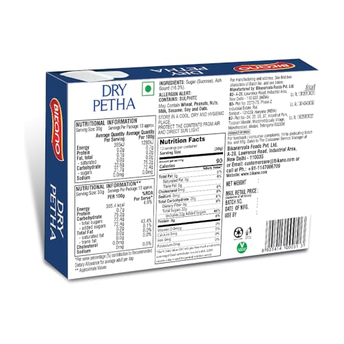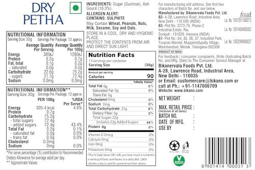 Dry Petha is a popular and mouthwatering sweet treat that originates from India. It is a traditional confection made from chunks or slices of translucent white pumpkin (also known as ash gourd or winter melon) that has been candied and dried. Dry Petha offers a delightful combination of flavors and textures. The sweetness of the candied pumpkin is complemented by the aromatic notes of cardamom and rose water creating a rich and satisfying taste. Dry Petha is a versatile sweet that can be enjoyed on its own as a dessert or snack. It is also a popular choice for gifting during festive occasions and celebrations.