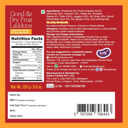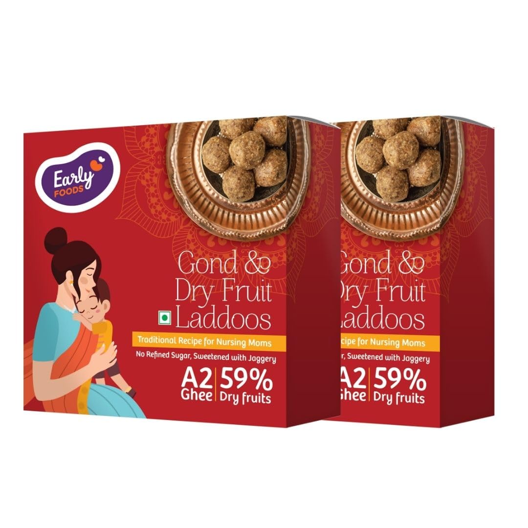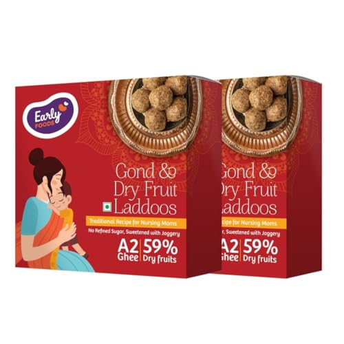 Early Foods Pack of 2: A2 gramshee Gond Laddu, Dry Fruit Laddu Home made | Sugar Free Laddu | Dink Laddoo | Gond Ke Laddu with Jaggery | Dry Fruits Laddu with Jaggery | Desi Ghee postpartum ladoo