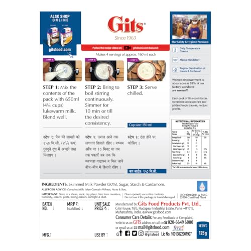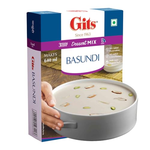 A cup of Basundi is guaranteed to sweeten your day the moment you take a bite. Basundi is a rich and flavourful Indian dessert that is made by boiling milk on low heat until it reduces to half. And now you can make it at the comfort of your home with Gits¬ Instant Basundi Dessert Mix. All it takes is a packet of milk and some continuous stirring to bring this sweetened condensed dessert to life in a matter of minutes. Garnished with aromatic Indian spice like cardamom the end result is lip-smacking. The 100% vegetarian mix is also preservative-free artificial color and flavor free which means that it is safe for all age groups to consume. Gits Instant Basundi is sure to come in handy for a special visit or festive occasions due to its long shelf life. Gits dessert ready mixes are made using the finest ingredients and with the suggested recipes you can make fantastic homemade Indian mithais. A 3-generation family-owned business Gits can help you make perfect delicious and flavour-filled Indian sweets and savouries.