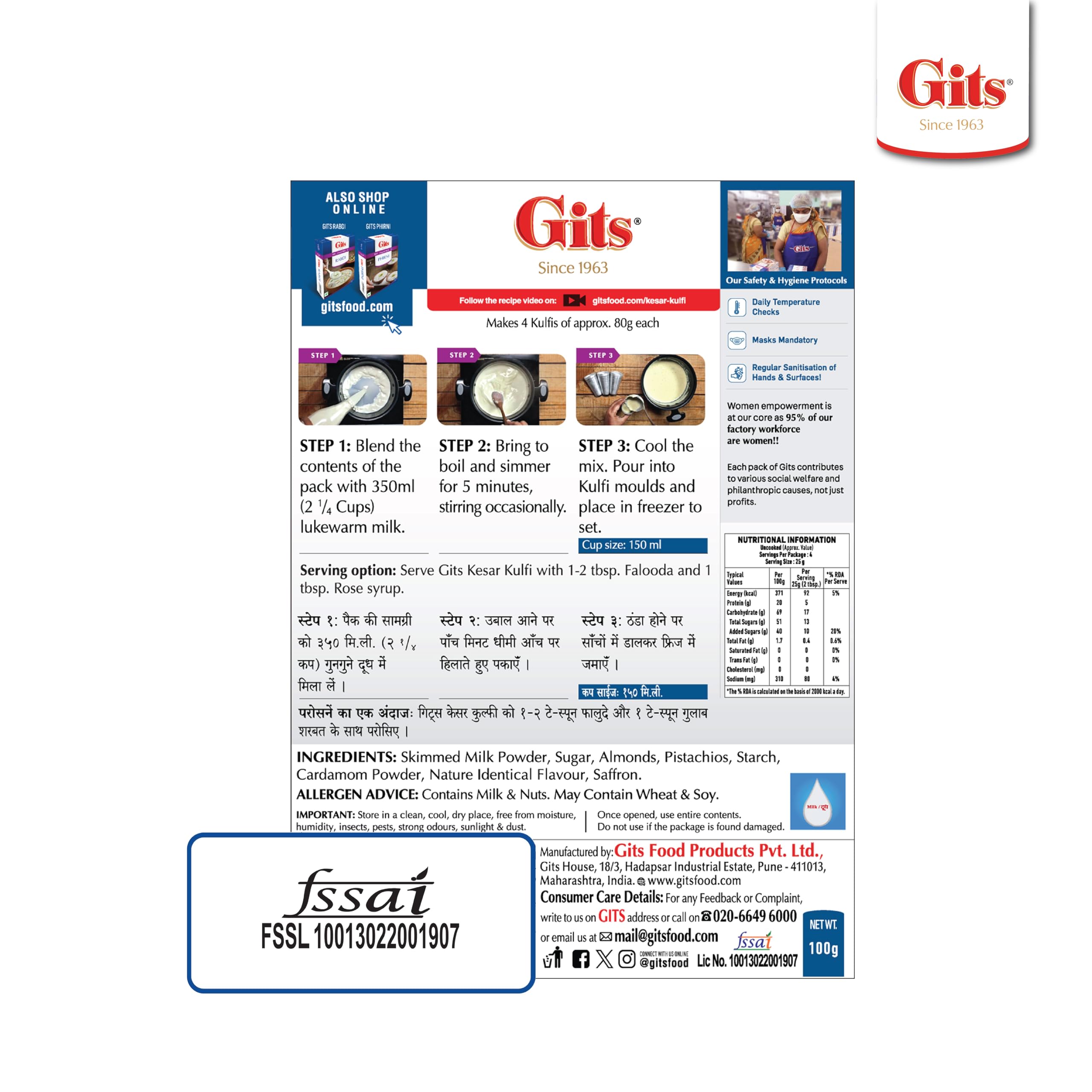 Gits Instant Kesar Kulfi Dessert Mix, 100g