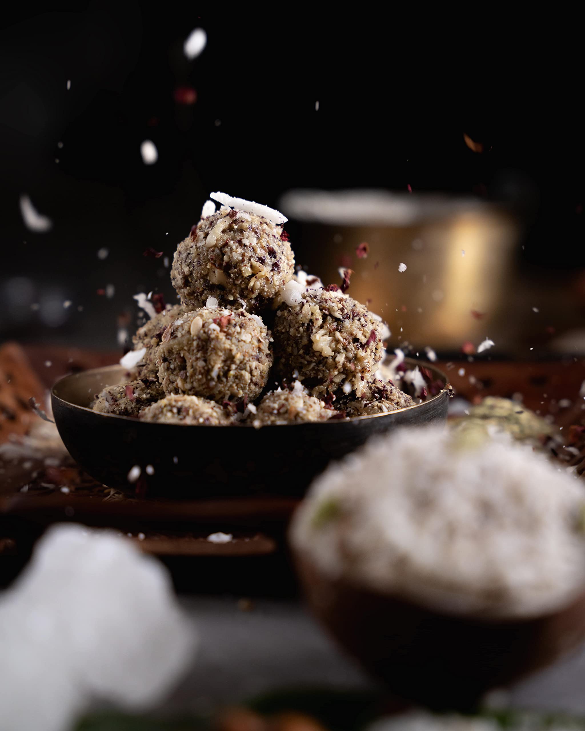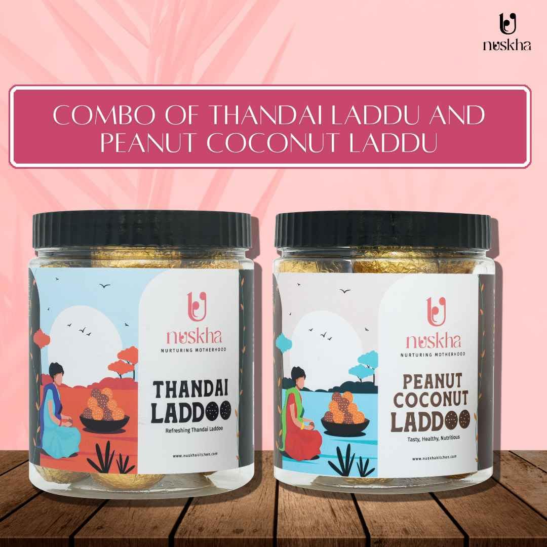 Discover Nuskha's delightful combo of Thandai and Coconut Laddu the perfect blend of taste and nutrition. Our Thandai Laddu is crafted with premium nuts seeds and aromatic spices offering a refreshing and energizing treat ideal for any occasion. Paired with our Coconut Laddu made from fresh coconut and natural sweeteners this combo provides a burst of flavor and health benefits. Both Thandai Laddu and Coconut Laddu are rich in essential nutrients supporting overall wellness and vitality. Enjoy the unique flavors of Thandai Laddu known to enhance digestion and boost immunity while indulging in the deliciously sweet and satisfying Coconut Laddu packed with fiber and antioxidants. Free from artificial additives and preservatives this combo is a natural and wholesome choice for your snacking needs. Experience the perfect fusion of tradition and taste with Nuskha's Thandai Laddu and Coconut Laddu combo.