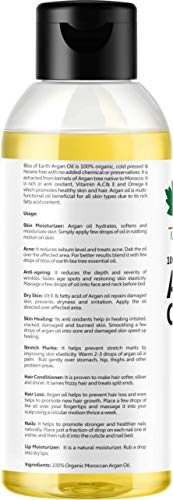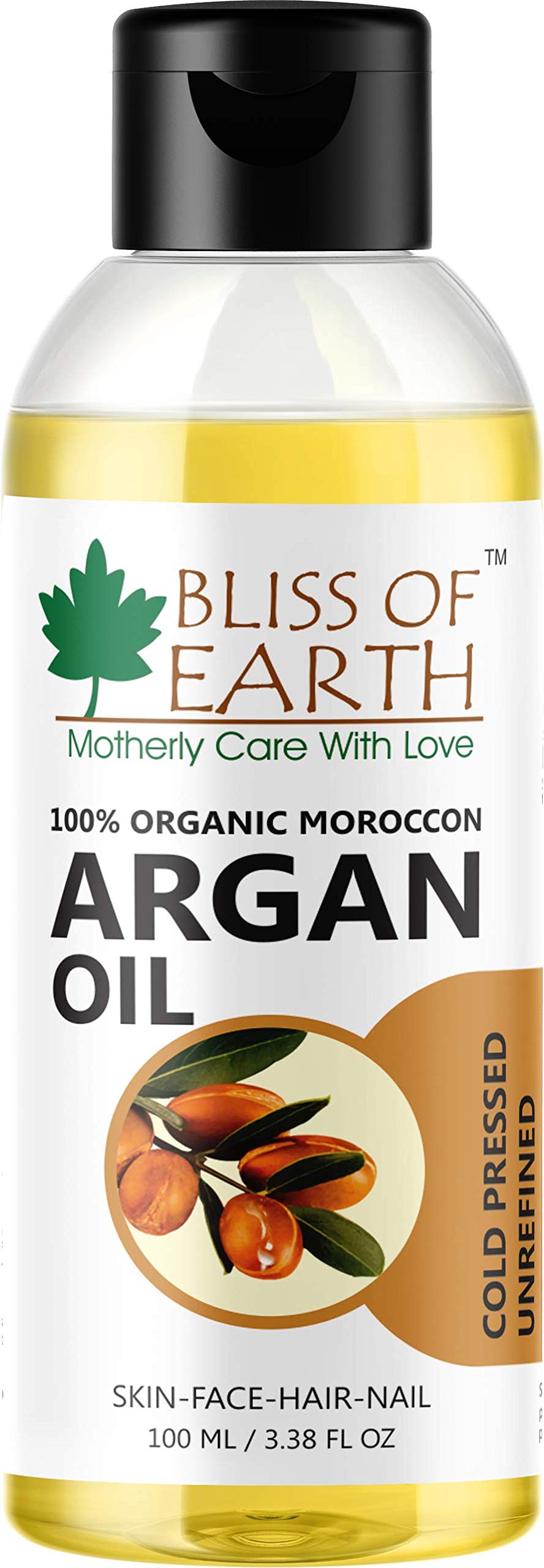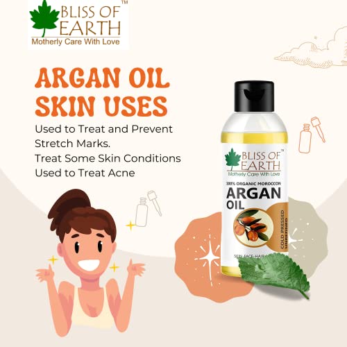 Bliss of Eartho 100% Organic Argan Oil Of Morocco For Face Hair & Skin Cold Pressed & Unrefined 100ml
