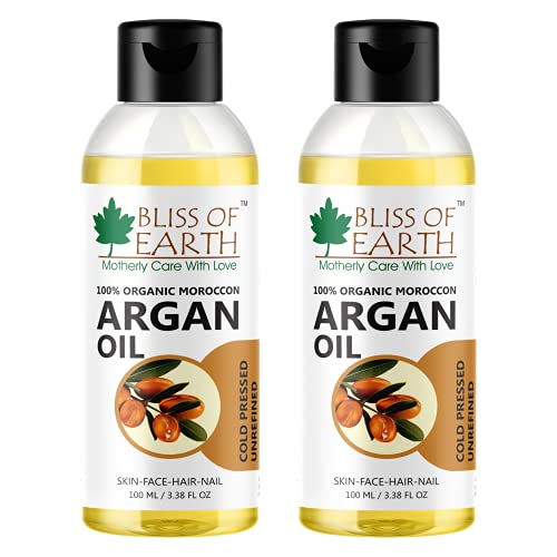 Bliss of Earth 100% Organic Argan Oil Of Morocco For Face Hair & Skin Cold Pressed & Unrefined 100ml Pack of 2