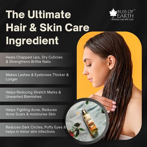 Bliss of Earth USDA Organic Castor Oil For Skin Hair & Thicker Eyelashes Cold Pressed & Hexane Free