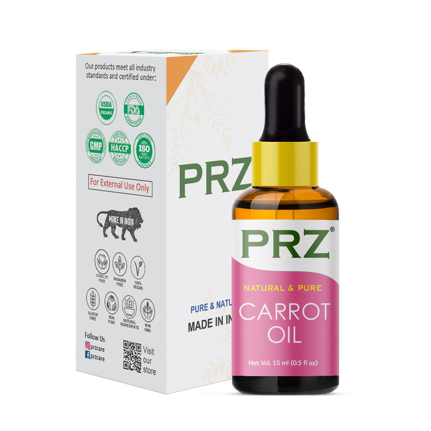 PRZ Carrot Seed Cold Pressed Carrier Oil - Pure Natural & Therapeutic Grade Oil for Aromatherapy Body Massage Skin Care & Hair Care 15 ml