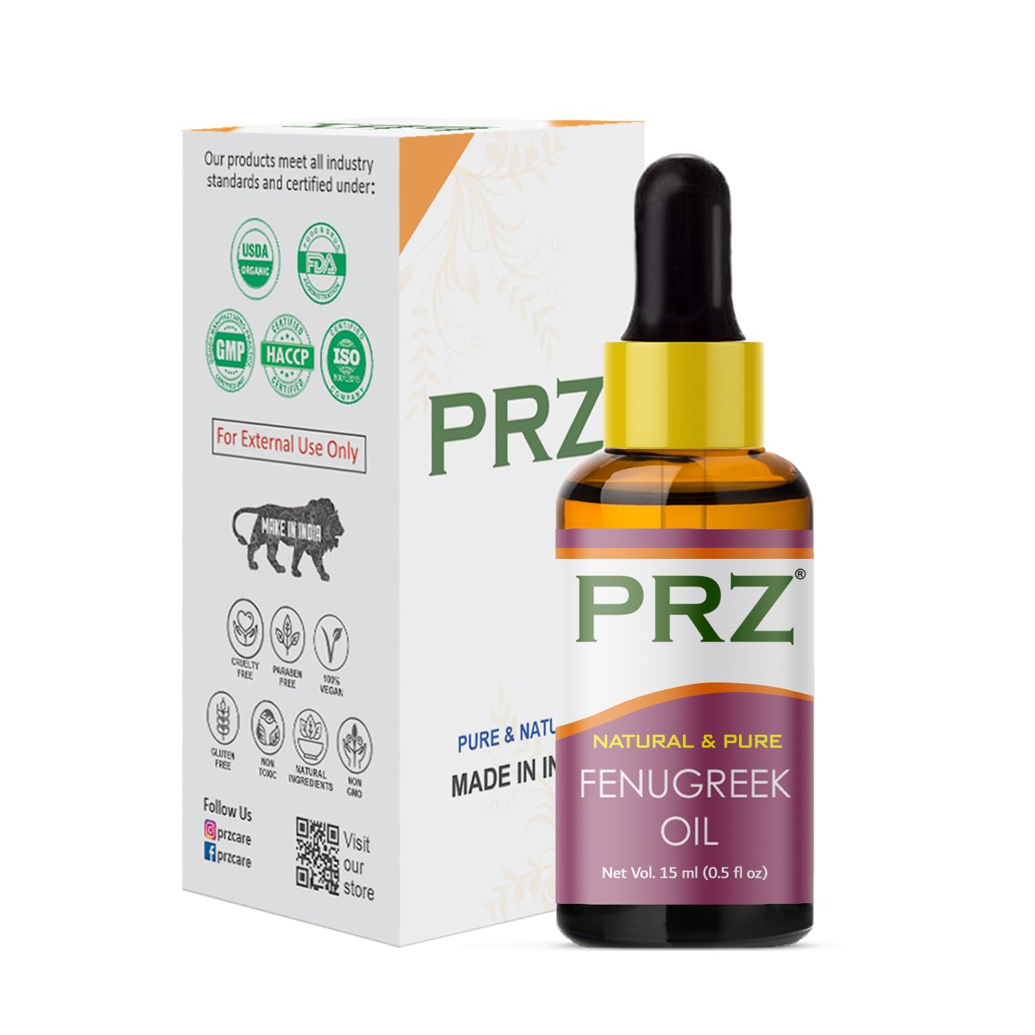PRZ Fenugreek Cold Pressed Carrier Oil - Pure Natural & Therapeutic Grade Oil for Aromatherapy Body Massage Skin Care & Hair Care 15 ml