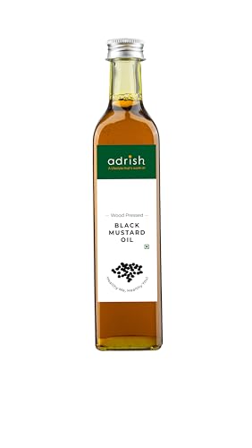 Adrish Zerowaste Wood Pressed Black Mustard Oil (500ml) - Organic & Unrefined | Mustard Oil for Cooking | Kachi Ghani Sarso Oil | Sarso Cooking Oil | Glass Bottle