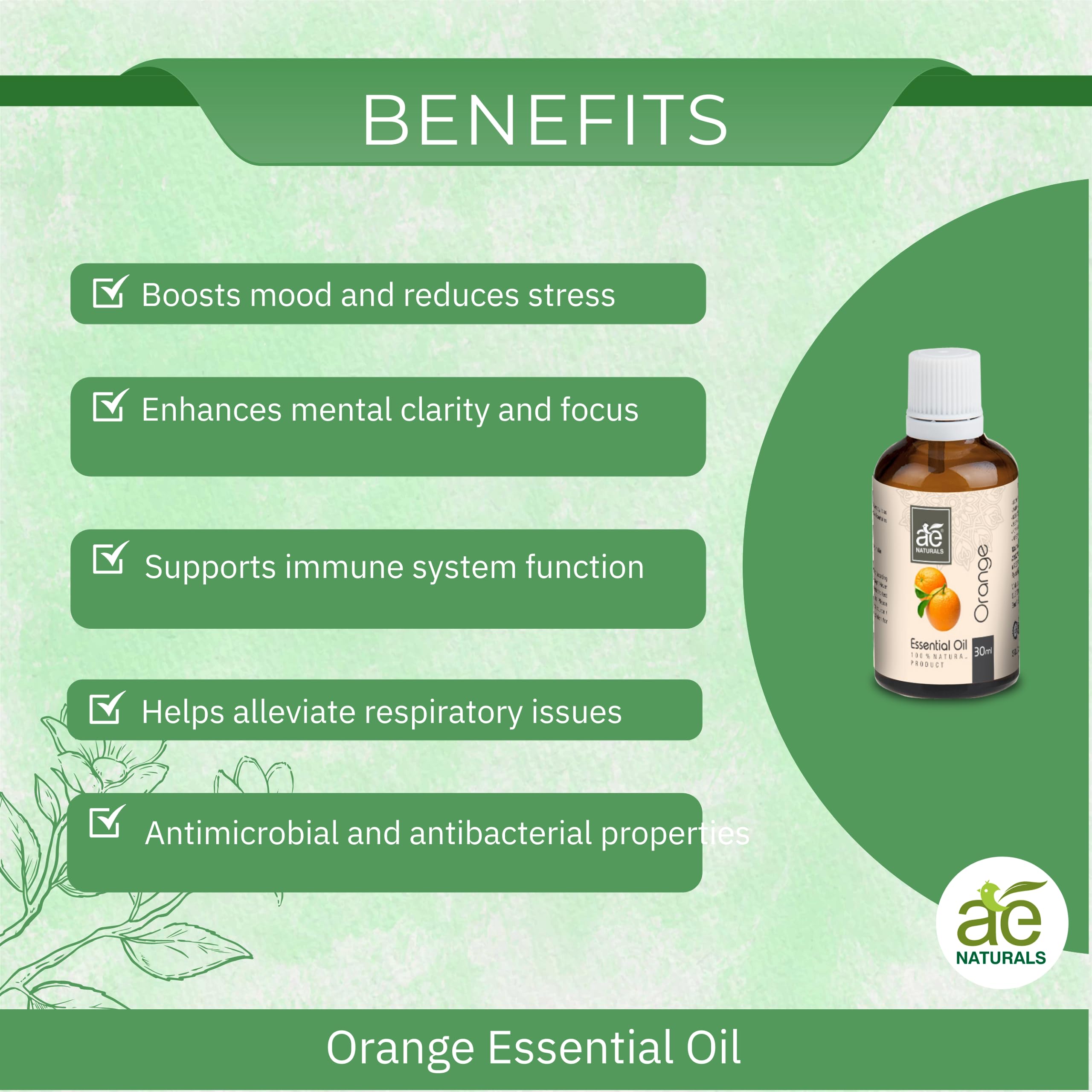 AE Naturals Orange Essential Oil 30ml | Citrus Bliss for Mood Upliftment and Stress Reduction