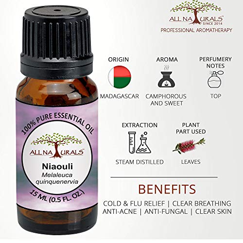All Naturals Niaouli Essential Oil 100% Pure for Congestion, Colds, Steam, Acne, Clear Breathing (More effective than Eucalyptus) - 15 mL