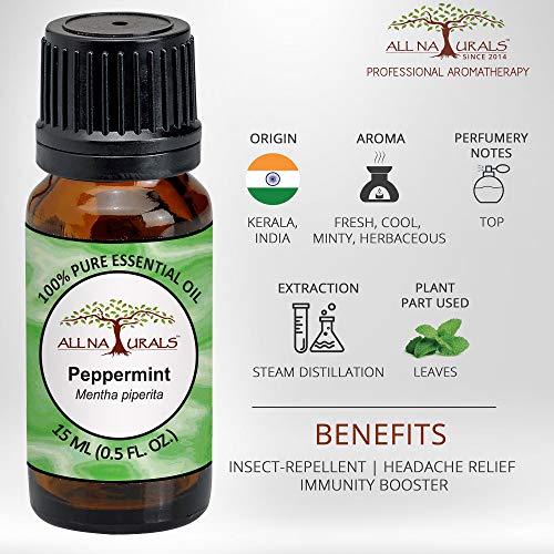 All Naturals Peppermint Essential Oil (UP, India) 100% Pure with Strong Lasting Aroma to keep cars rats and insects free | For Hair Growth & Pain Relief - 15 mL